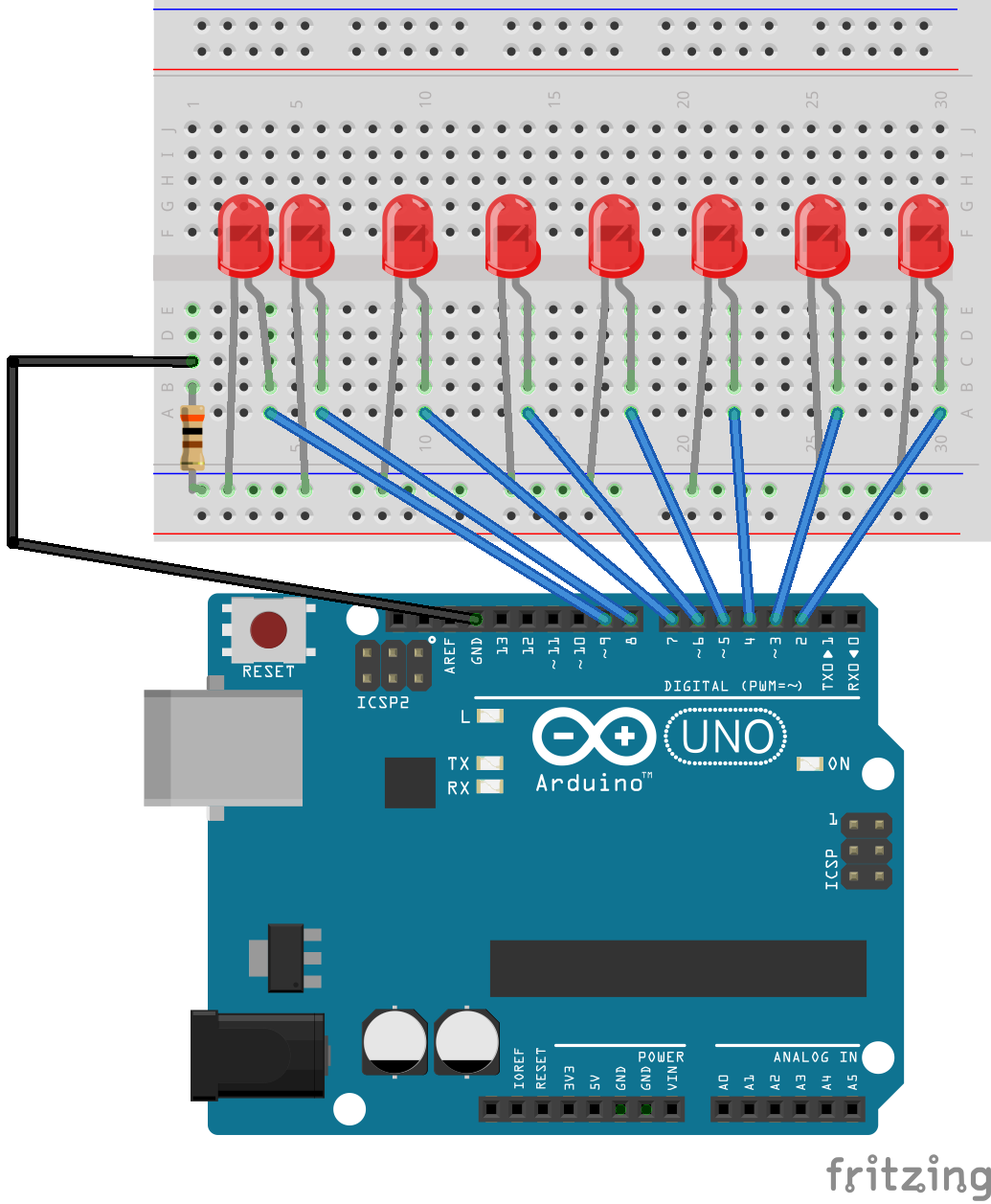 Per i vari esercizi possono essere disponibili due schemi, i suffissi _bb indicano lo schema per la breadboard mentre _schem indica lo schema del circuito.
